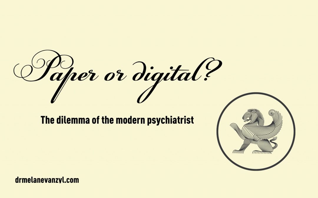 A paperless or paper-free practice is a work environment which uses minimal physical paper and instead uses primarily digital documents. The purpose of the set of articles which follow is to give you some insights and advice from our colleagues who are in the process of transitioning, or already have transitioned to a paperless practice. A series of questions were posed in interview format which were answered to help you to make better informed decisions. A big thank you to Drs Marcelle Stastny, Chris van den Berg, Pierre Malherbe, Jow’hara Chundra, Melane van Zyl, Shaun Janki and Eugene Allers for sharing their expertise and experience. Also included is an article by Dr Doris Viljoen, a futurist, on the trends influencing the future of psychiatry in South Africa (of which tele-medicine is a big one) and an article with legal advice for practicing psychiatry in the digital age by Elsabe Klinck, with commentary from Tibor Szabo (“Nibbles and Bytes”) – responsible for South African Psychiatry’s IT functions.